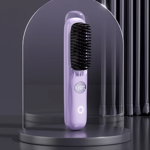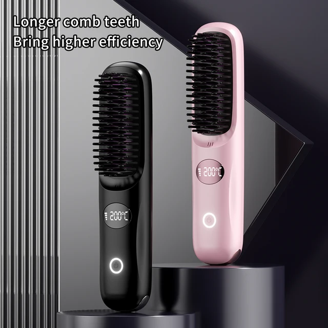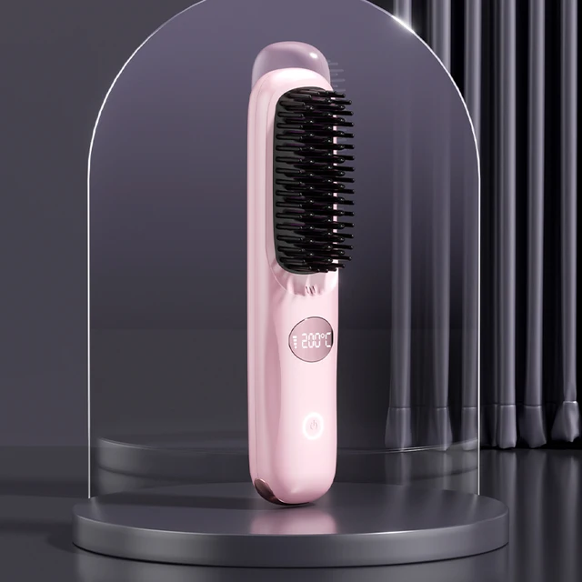 4 Temperature Adjustable Cordless Hair Straightener Brush Portable Rechargeable Hair Strling Brush Hair Curler Comb